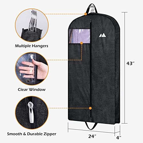 43″ suit covers for men can hold multiple pieces of clothing, suitable for storing shirts, jackets, tuxedos, t shirts, uniforms, fur coats, dresses, etc;