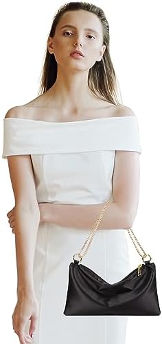 Black evening bag with handle: You will receive one evening clutch and two interchangeable metal chains with this set.
