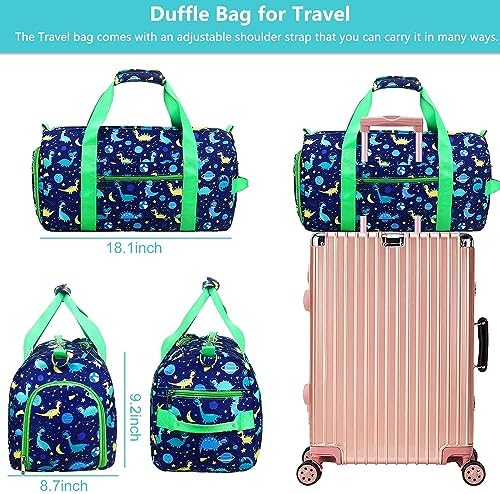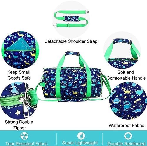 【Kids Duffle bag with Luggage Sleeve】That kids travel bag allows you to slide it over the standard handle of a rolling suitcase or luggage, make your flight or travel more easy and convenient.And One zippered pocket on the back to hold your smart phone, cards or passport. Each kid overnight bag comes with detachable shoulder strap, for those times when they want to sling it over their shoulder and be on their way.