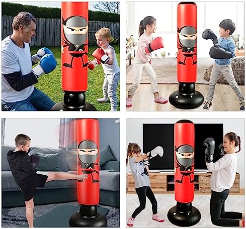 Funny cartoon stickers come with the punching bag, and you can decorate it as you like. Inflatable Punching Bag could be a great sports toy for boys and girls exercising at home. Please note that the sticker may come off over time.