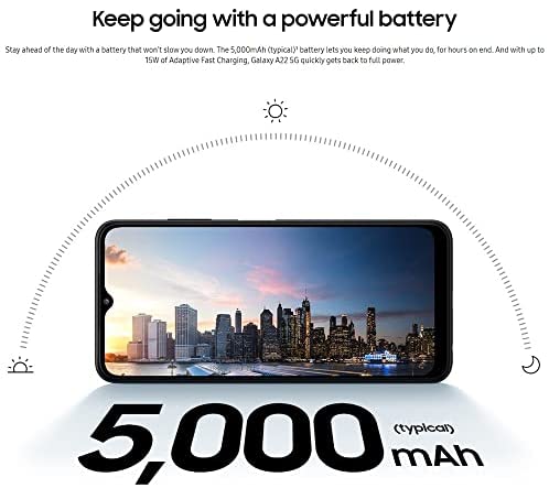 Samsung Galaxy A22 5G mobile was launched on 2nd June 2021. The phone comes with a 6.60-inch touchscreen display. Samsung Galaxy A22 5G is powered by an octa-core processor. It comes with 4GB of RAM. The Samsung Galaxy A22 5G runs Android 11 and is powered by a 5000mAh battery. The Samsung Galaxy A22 5G supports proprietary fast charging. As far as the cameras are concerned, the Samsung Galaxy A22 5G on the rear packs a triple camera setup featuring a 48-megapixel primary camera with an f/1.8 aperture; a 5-megapixel camera with an f/2.2 aperture; a 2-megapixel camera, and a 2-megapixel camera with an f/2.4 aperture. The rear camera setup has autofocus. It has a single front camera setup for selfies, featuring an 8-megapixel sensor with an f/2.0 aperture. The Samsung Galaxy A22 5G runs One UI Core 3.1 is based on Android 11 and packs 64GB of inbuilt storage (up to 1000GB). The Samsung Galaxy A22 5G is a dual-SIM (GSM) mobile that accepts Nano-SIM mobile. The Samsung Galaxy A22 5G measures 167.20 x 76.40 x 9.00mm (height x width x thickness) and weighs 203.00 grams. It was launched in Grey, Mint, and Violet color. Connectivity options on the Samsung Galaxy A22 5G include Wi-Fi, GPS, USB Type-C, 3G, and 4G (with support for Band 40 used by some LTE networks in India). Sensors on the phone include accelerometer, ambient light sensor, proximity sensor, and fingerprint sensor.