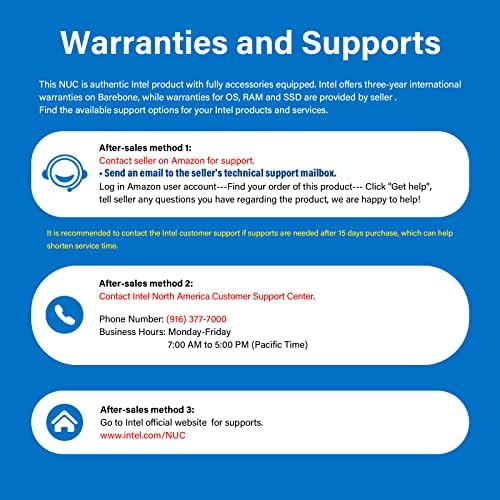 【3-Year Global Warranty from Intel NUC】- Enjoy the wonderful shopping experience with us! All products sold from us are backed by a 3-Year Warranty Service from Intel. Should you encounter any issues with the NUC Barebone part, you can either head to the local Intel NUC offline after-sales store or contact us for assistance. As a friendly reminder, please remove the Memory and SSD before returning to the aftermarket. NENCHIN offers a 3-year warranty on RAM, SSD, and OS!
