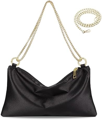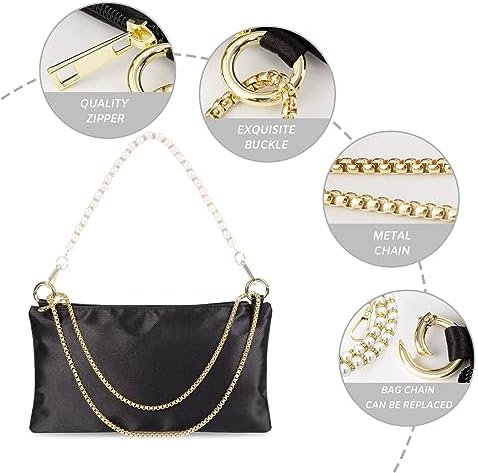 Black evening bag with handle: You will receive one evening clutch and two interchangeable metal chains with this set.
