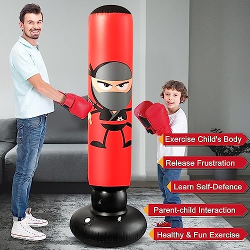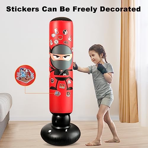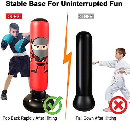 Funny cartoon stickers come with the punching bag, and you can decorate it as you like. Inflatable Punching Bag could be a great sports toy for boys and girls exercising at home. Please note that the sticker may come off over time.
