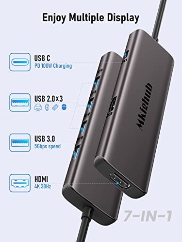 Mkighub 7 in 1 USB C Dual HDMI Adapter USB C Docking Station Dual HDMI Monitors for Window/iOS/Linux/Android System